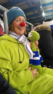 Als die Anzeigetafel das Endergebnis von 2:0 für Arminia zeigte, haben wir mit den Fans um die Wette gestrahlt! Ob das mit dem Arminia-Sieg nun an unseren roten Nasen lag, an den weißen Fanschals, die von der aktiven Fanszene verkauft wurden, oder an unserem langhalsigen Freund Boris lag, wissen wir nicht. Aber eines wissen wir: Wir hatten einen riesigen Spaß und haben uns von der tollen Stimmung und den netten Fans total mitreißen lassen. Wir konnten zwar nicht alle Fangesänge mitsingen oder verstehen („Was ist denn ein DFB und warum ist er so scheiße?“), aber wir haben uns trotzdem köstlich amüsiert. Was meint ihr, an welchem Glücksbringer es wohl gelegen hat?